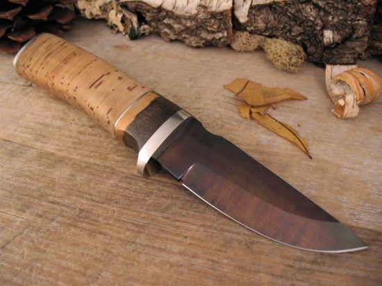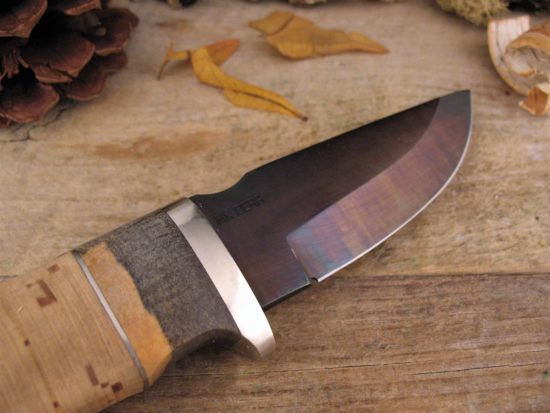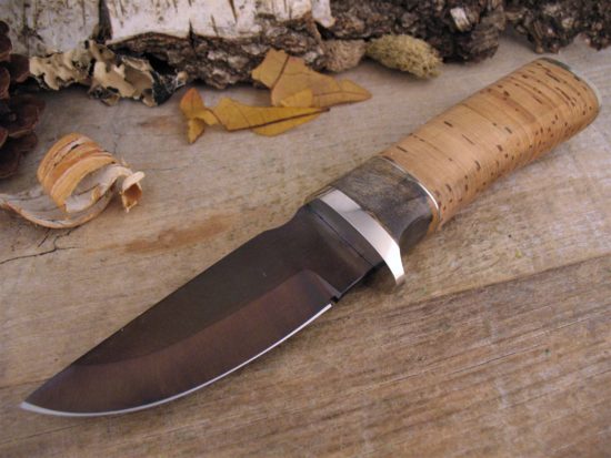 The Birch Bark must be Harvested, Dried and then Cut and Stacked Tightly before using. Once on the knife it is lightly Sanded to Shape – this handle is best suited for a Med to Large Grip.