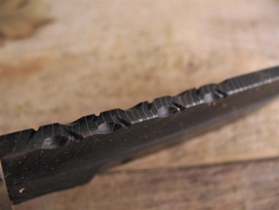 Herb also gave this blade some unique Filework on the Spine, this would do double duty as Thumb Ridges if you choke up on the blade.