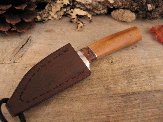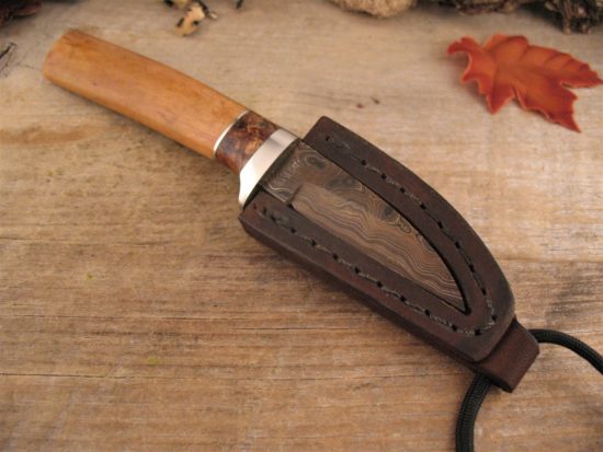 The Heavy Leather Neck sheath has an Amazing Feature – Herb has embedded a Strong Rare Earth Magnet inside the back of the sheath!
