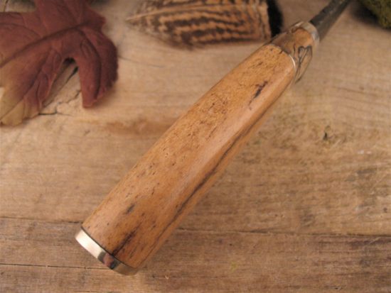 The handle is flanked by Nickel Silver Spacers and a gorgeous Stabilized Spalted Maple forward spacer which adds a dash of contrast to the handle.