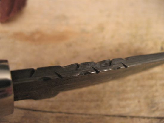 On this knife Herb has also added some Vine Filework on almost the entire length of the Spine which looks great but serves a dual purpose of also replacing Thumb Ridges for grip enhancement.
