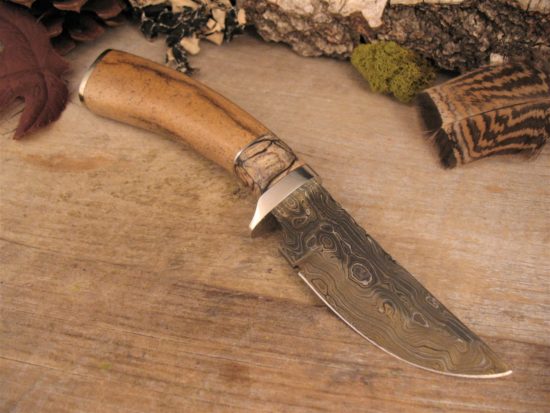 Here is a Perfect EDC sized Clip Point Hunter from Herb that has his high contrast Sole Authorship Birds Eye Damascus. This is a great looking knife with artistic attributes, but I guarantee it will perform as good as it looks.