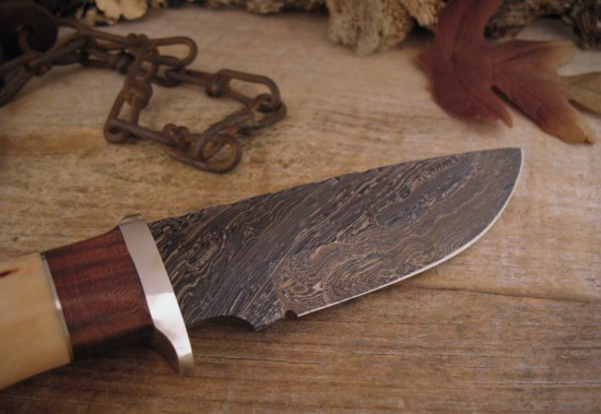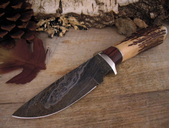 Here is a Rare Sole Authorship piece from Herb, it is a Stag Hunter that he has forged with his NEW Frog’s Hair Pattern Damascus. This is a knife with artistic attributes, but I guarantee it will perform as good as it looks.