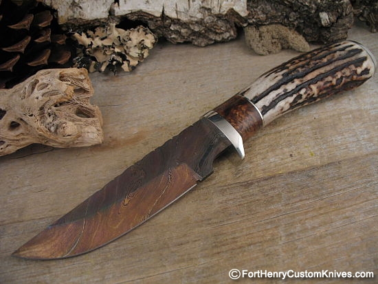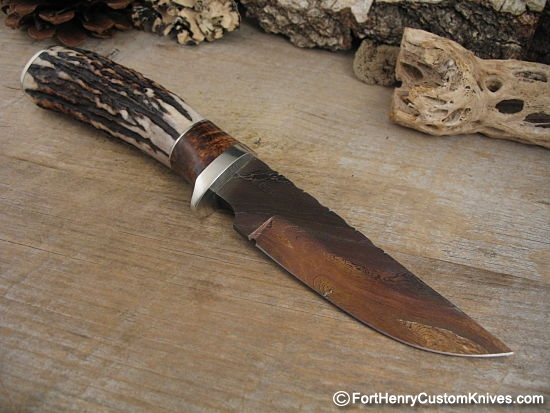 A beautiful knife with some great handle material in a Brand New Damascus Pattern that is truly unique.