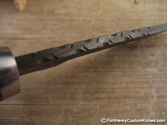 On this knife Herb has also added some Vine Filework on the Spine which looks great but has a dual purpose of also replacing Thumb Ridges for grip enhancement.