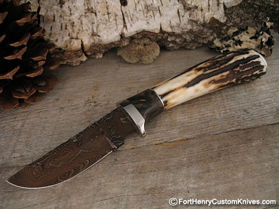 I was Herb’s First Customer at the Blade Show this year and I hand picked the best from his Table. This special knife has Herb’s Mosaic High Carbon Damascus that is over 2,500 layers thick and a gorgeous Sambar Stag handle.