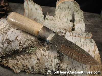 Direct from the Maker ~ The most striking feature of this special knife is of course Herb’s Bird’s Eye Damascus which is over 1,200 layers thick. Another wonderful feature that is not visible in my pictures are things like the Fileworked spine, gentle handle contouring and the ever present immaculate attention to detail that Herb provides with every knife.