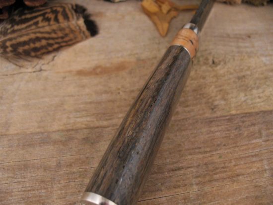 The Bone is contoured into a comfortable Oval shape, it has Nickel Silver Spacers and a forward Stabilized Spalted Maple wood spacer for color.