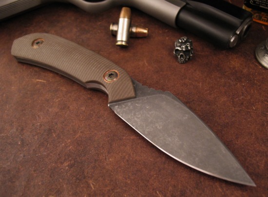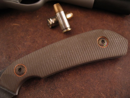 A Full Grip inside the handle is enhanced with Custom Milled Traction Ridges along the entire surface of the handles. This example also has Custom Copper Post Collars and Anodized Titaniun Screws.