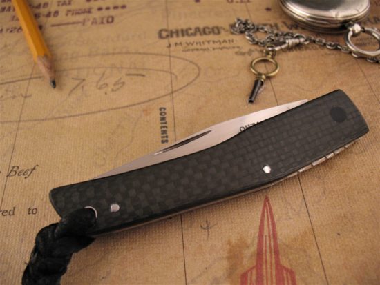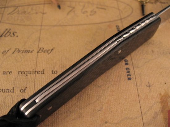 Hiroaki has brought the Traditional Slip Joint into the 21st Century ~ first he started with ultra modern F-18 Carbon Fiber handle scales then added a couple of other very unique enhancements.