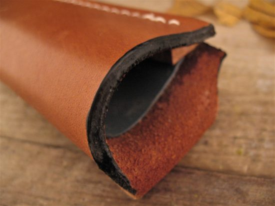 Hiroaki also makes his own thick, Hand Stitched Leather Sheaths, on this one he has added a new feature ~ a Full Kydex Lining.