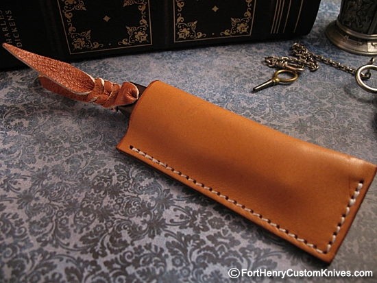 Hiroaki makes his own Leather Pocket Sheaths for every knife, well stitched and holds the knife securely.