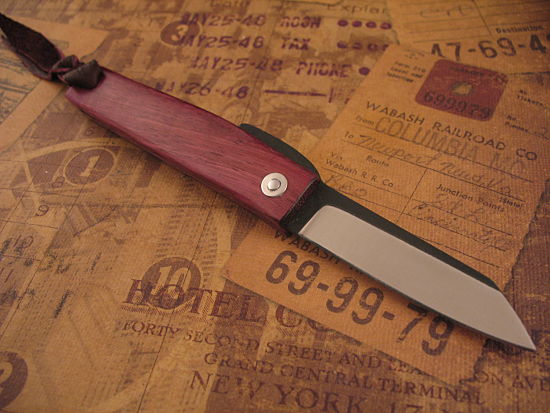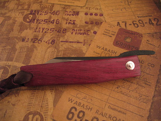 This example by Hiroaki has an Integral handle, carved from a SINGLE PIECE of South American Purple Heartwood.