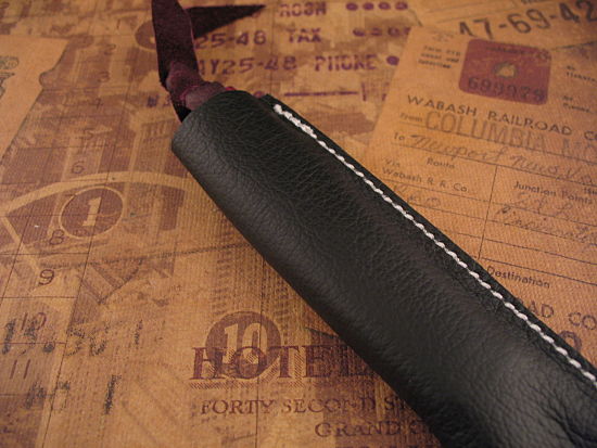 Hiroaki also makes his own Leather Slip / Pocket Sheaths for every knife, well stitched and holds the knife securely. This knife comes with a Black Leather slip sheath.