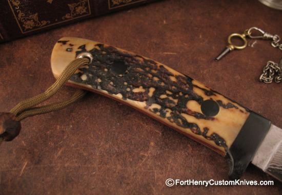 A Great EDC with very hard to find Amber Stag Scales. Black Micarta Pins add a dramatic look. Perfect size for discreet and comfortable Belt Carry.