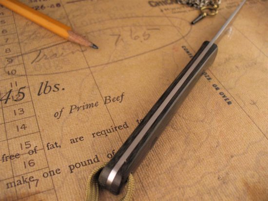 The D2 Steel blade has a Full Height Hollow Grind, a labor intensive Hand Rubbed / High Satin finish and an expert Heat Treat that leaves the blade at 61-62 Rc. A perfect size for discreet carry.