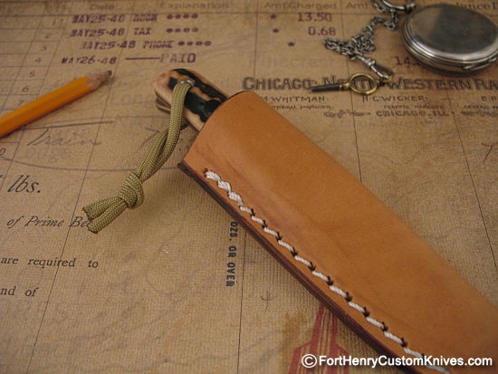 Hiroaki also makes his own thick, Hand Stitched Leather Sheaths, on this one he has added a new feature ~ a Full Kydex Lining.