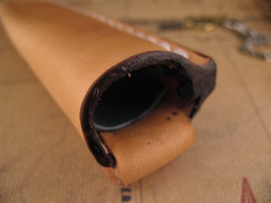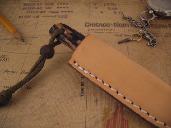 Hiroaki also makes his own thick, Hand Stitched Leather Sheaths, on this one he has added a new feature ~ a Full Kydex Lining.
