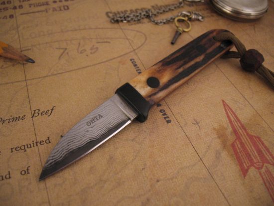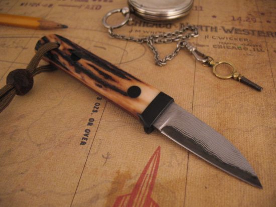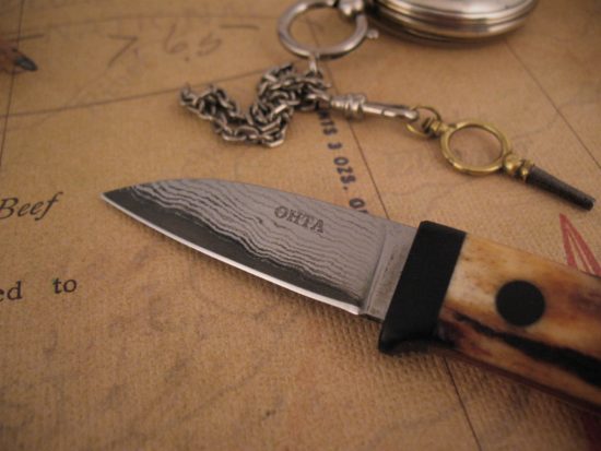 This is a Small, Elegant Gentleman’s fixed blade I just picked up from Hiroaki. Hiroaki only made a few of these Gentleman’s knives with aged Stag Handles! The beautiful Scales are well matched with Amazing Gnarly Grain and color.
