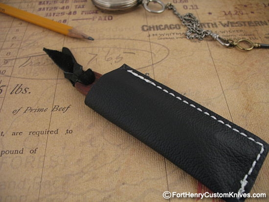 Hiroaki also makes his own Leather Slip / Pocket Sheaths for every knife, well stitched and holds the knife securely. This knife comes with a Black Leather slip sheath.