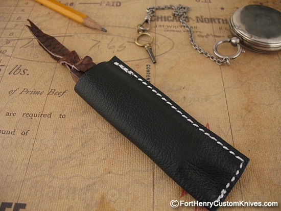 Hiroaki also makes his own Leather Pocket Sheaths for every knife, well stitched and holds the knife securely. This knife comes with a Black Leather slip sheath.