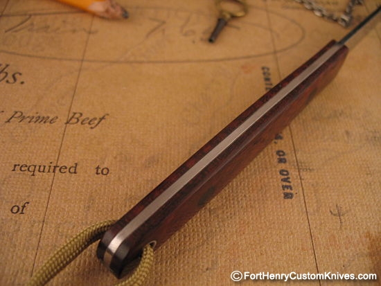 This is an Small, Elegant Gentleman’s fixed blade from Hiroaki with some of the best Stabilized Snakewood Handles I have seen in a long time.