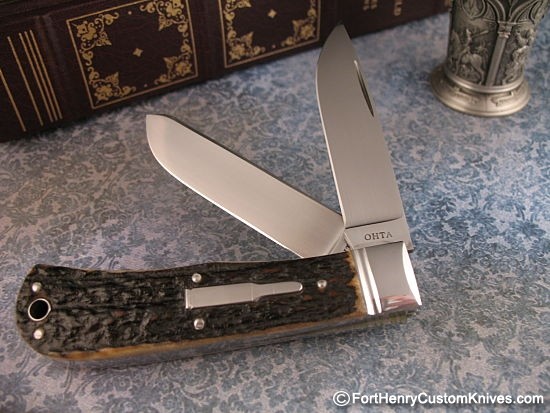 A hefty precision Double Blade pattern Slipjoint with gorgeous premium Sambar Stag handles.