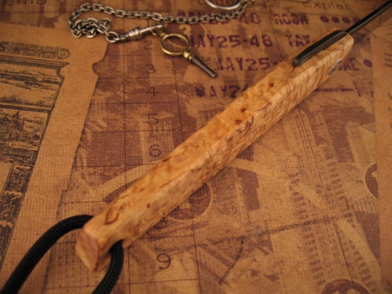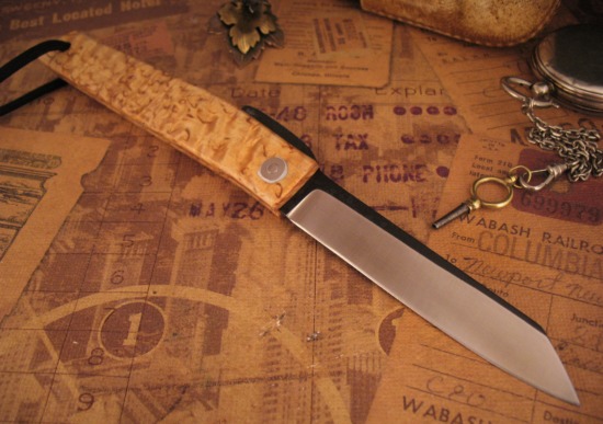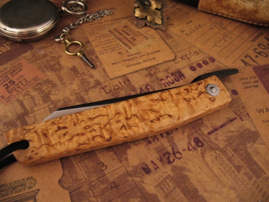 This example by Hiroaki has an Integral handle, carved from a SINGLE PIECE of European Curly Birch.
