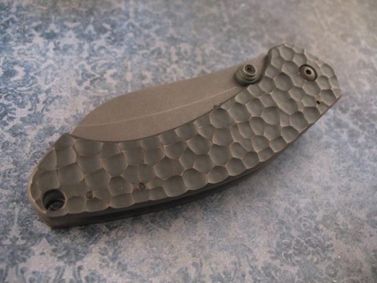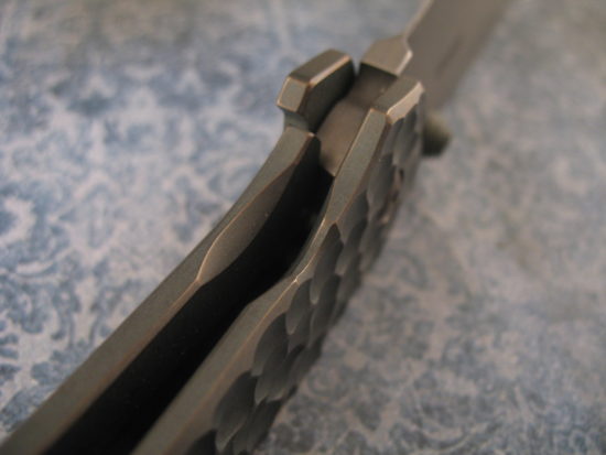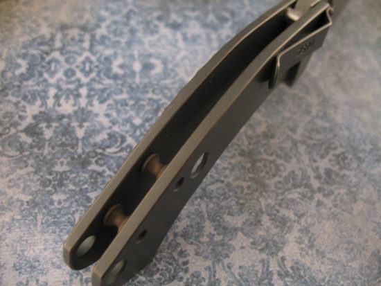 Anodized Titanium Standoffs aid the overall stability of the knife.