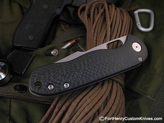 It will ride comfortably in the pocket using the discreet Deep Carry clip and due to its Titanium and Carbon Fiber construction it is very light for its size. Of course this knife has Jeremy’s signature Razor Sharp RH Mirror polished Chisel Grind with Satin Penetrator tip!
