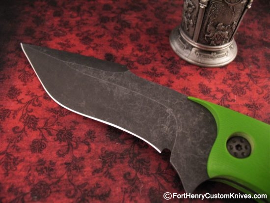 The Blade was Flat Ground from Nitro V.  It has a Custom Dark Stonewashed Finish for max wear resistance.  The Blade itself has an Incredible Recurve / Harpoon Profile.