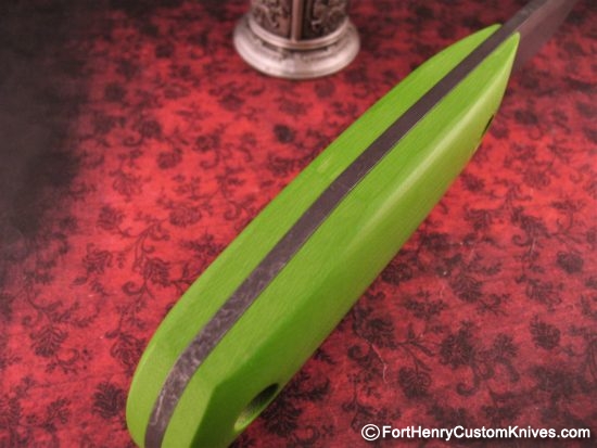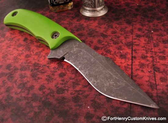 This is a Full Tang knife that has Custom Contoured Full Grip Toxic Green G-10 Handle Scales