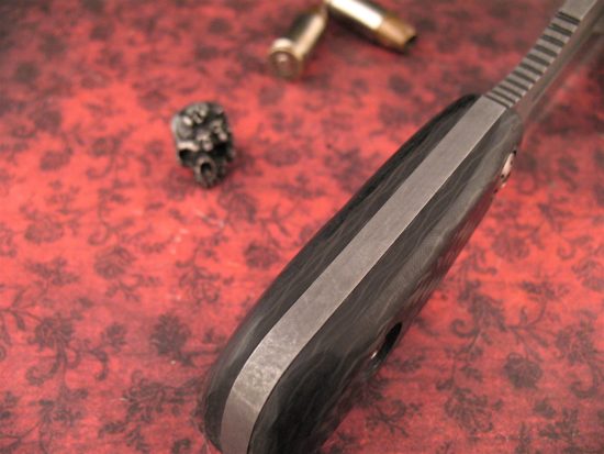 This is a Full Tang knife that has Custom Contoured Twill Carbon Fiber Handle Scales. This model is made to Fit a Three Finger Grip, but with the addition of a Braided Lanyard – all Four Fingers will feel Secure.
