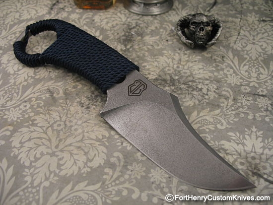 This knife has an AEBL Blade with a 3 1/2″ Cutting edge and a Rockwell of 62 ! The Blade has a Custom Dirty Snow finish. This knife IS as Sharp as a Razor!!
