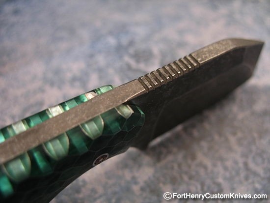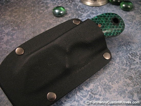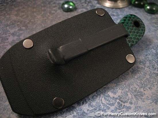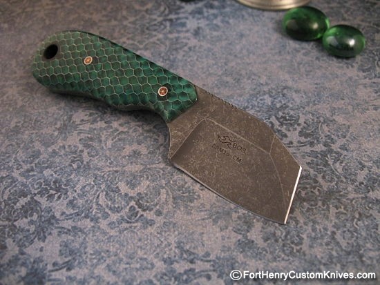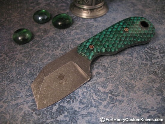 This is called the Wee Razel SS ~ Custom made with some new Radioactive Green CTEK handle material. I love this handle material! It also has Mosaic Pins and Micarta lined Thong hole.