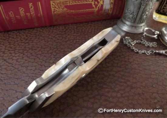 This is Kansie’s amazing 2-Way ~ Hunter / Dagger Liner Lock with Mammoth Ivory Handles.