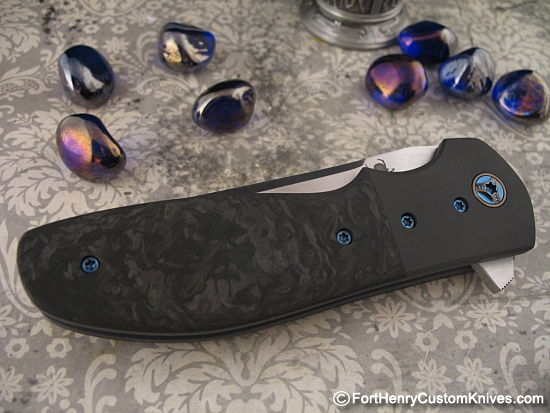 The Carbon Fiber is precision fitted to the Zirconium bolsters so well that it appears to be one piece ~ you cannot even feel the joint.