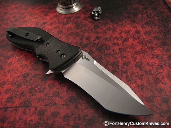 The overall feel is very hand filling yet comfortable. The beefy Recurve Complex Grind Blade was hand ground using the new Carpenter  CTS-XHP Super Steel ~ it is perfectly centered and flies open with just a touch of the Flipper!  The thick Titanium Liner Lock engages early and very securely.