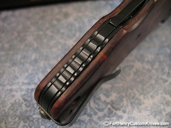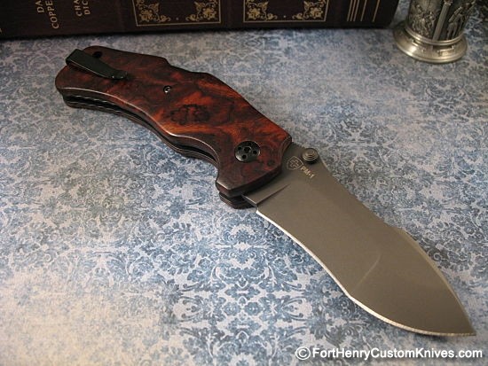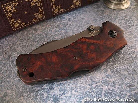 Here is the LAST of these Rare Swiss Police Issue knives that I received from Lion Steel. A big, Solid folder called the PM-1 ~ however, this example has an added feature of absolutely gorgeous Desert Ironwood Custom Scales by Cuscadi