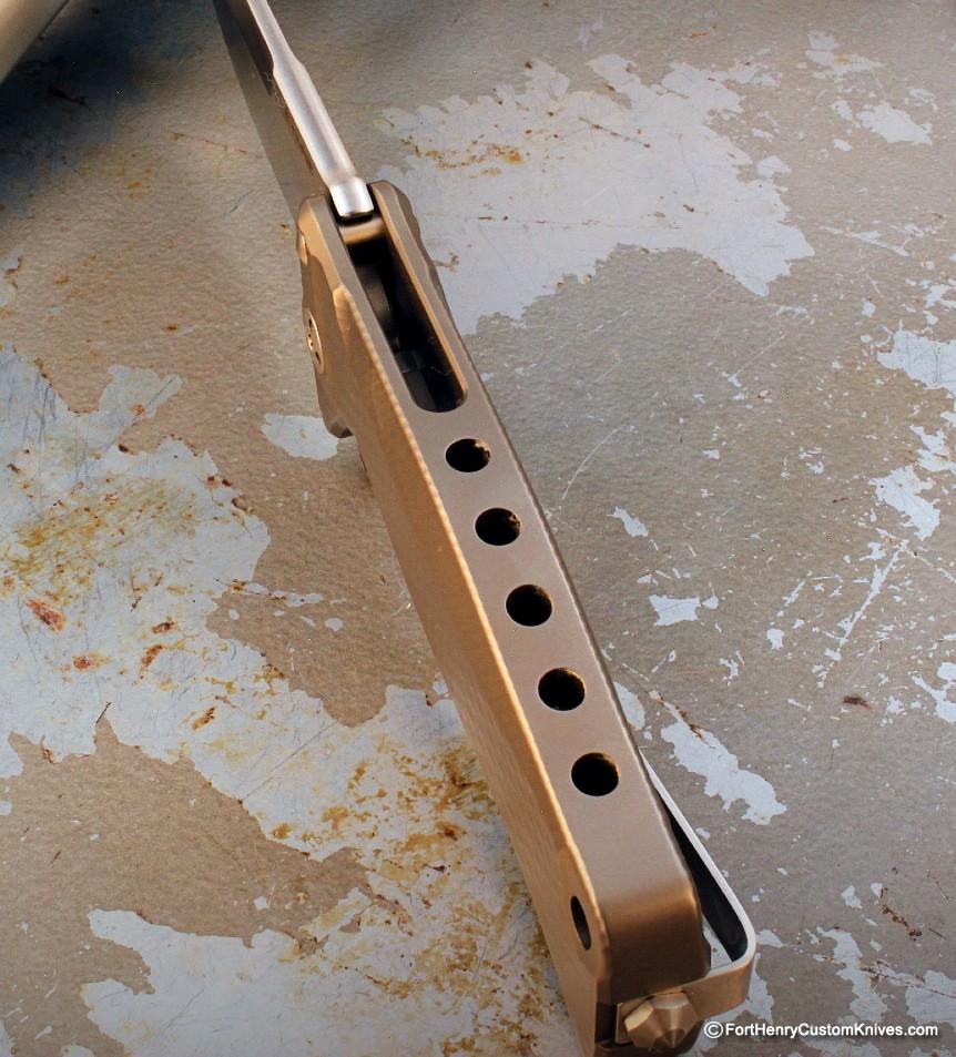 This is the SR22 B which is made from a single piece of titanium was used to construct the Integral Frame of the knife!