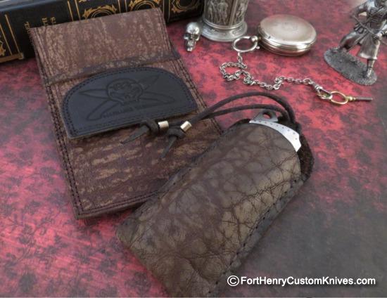 A Thick Leather Slip Sheath and Leather Storage Pouch made by Mariano are included.