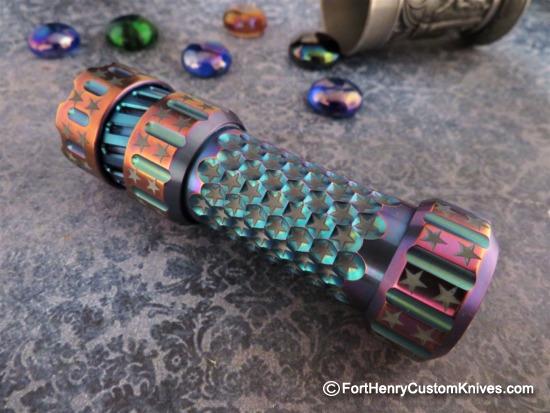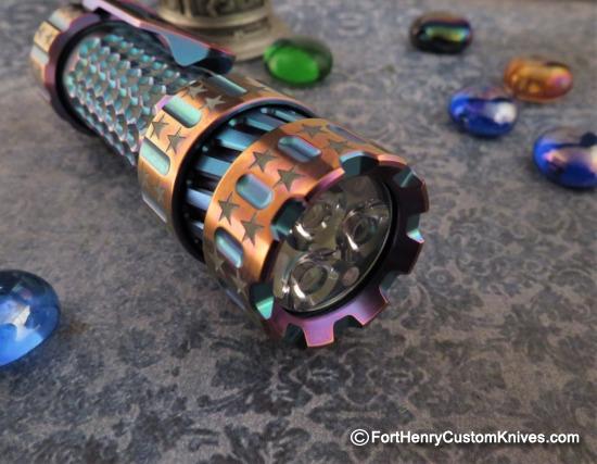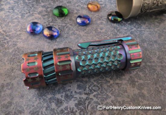 As many of you know, Mechforce has Designed and brought to market a large number of affordable Firearm Accessories, CNC Tool adaptations and other Unique Tools & Gadgets ~ I am proud to present the Exclusive Solid Titanium Mechforce Turbo EDC Flashlight w/Custom “Patriot” Anodizing