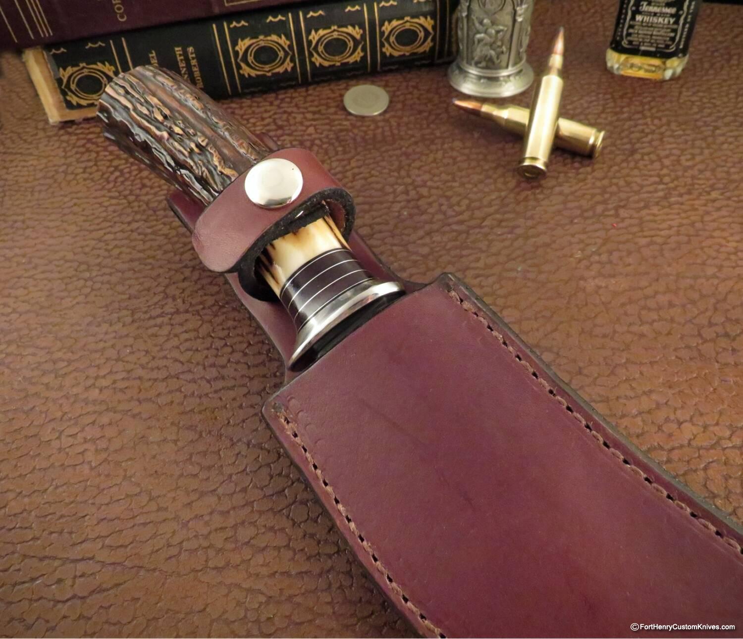 William Scagel Style Handle and Blade Shape ~ with a beautiful Stag Handle and custom Stainless Guard, Aluminum and G-10 spacers for a very unique look.