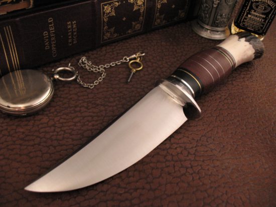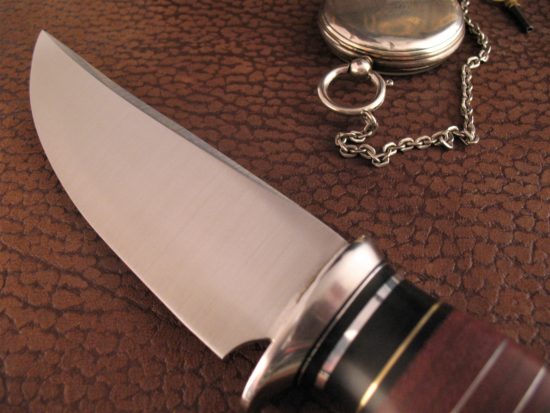 For those that want a traditional Hand Forged Hunting knife here is a gorgeous example of Mike’s work ready to go on your belt.