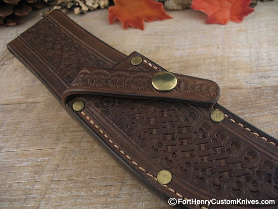 Comes with a Right hand Jack Mosher Tooled Leather belt sheath, Stainless Rivets and Stitched.
