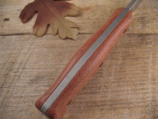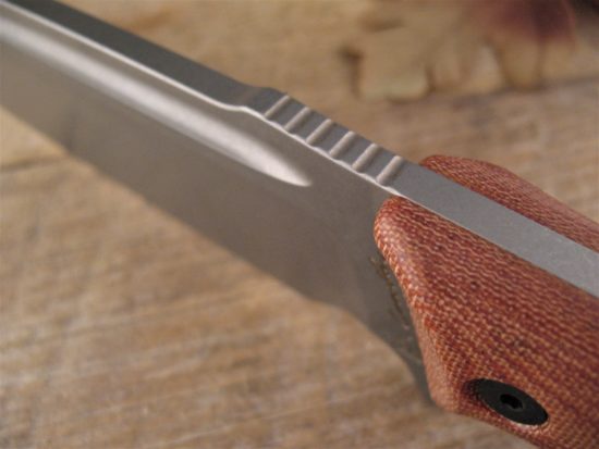This is a stout knife with an excellent design. The Thumb Ridges on the spine and the excellent ergonomics of the handle make this knife a joy to hold.  Nathan has even posted pics of his rigorous Performance Testing showing him Batoning and Chopping with his own blade.