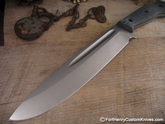 I am proud to offer this already very popular Field Knife from Nathan Carothers (aka: Nathan the Machinist). This is a very Large/Robust Fixed Blade (almost too big for my light box) that was precision built to tackle any Camp Chore or Chopping task.