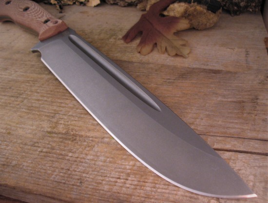 The High End CPM 3V blade on this Medium Chopper has Nathan’s famous Delta Heat Treatment and is a Robust .235 Thick ~ it has a High Hollow Grind and a Uniform Stonewashed finish.