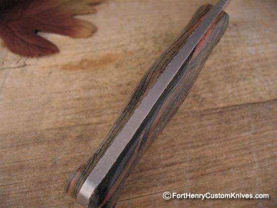 The High End CPM 3V blade is a Robust 3/16″ Thick ~ it has a High Hollow Grind and a Uniform Stonewashed finish.