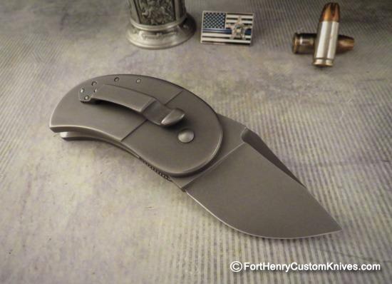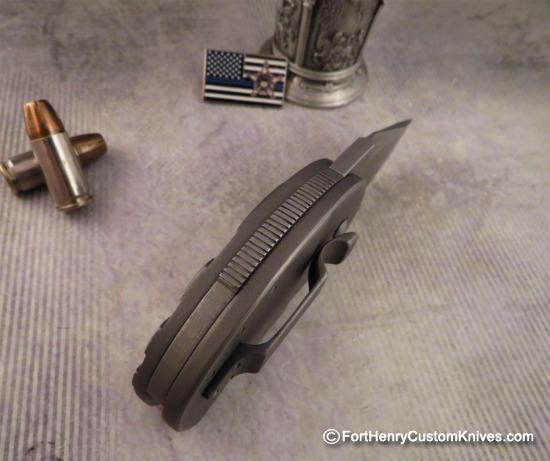 The Titanium frame has a Subtle Blasted finish with a Tough Stonewashed Blade with a Custom Swedge.